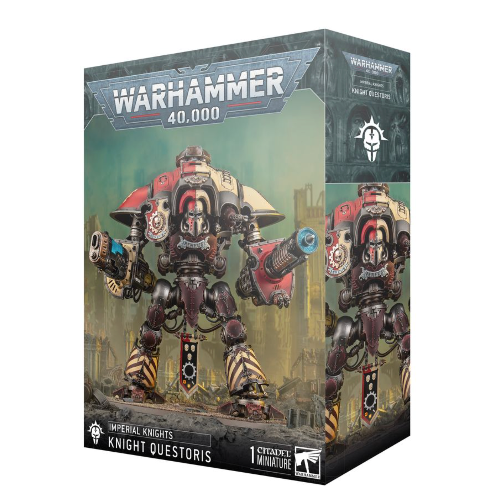 – Knight Gallant, armed with thunderstrike gauntlet, reaper chainsword, and meltagun (which can be replaced with a Questoris heavy stubber)