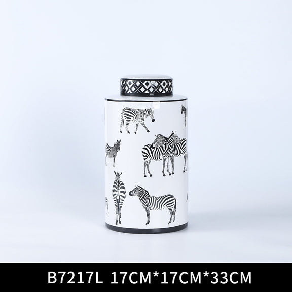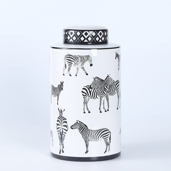 Zebra Vase with Lid