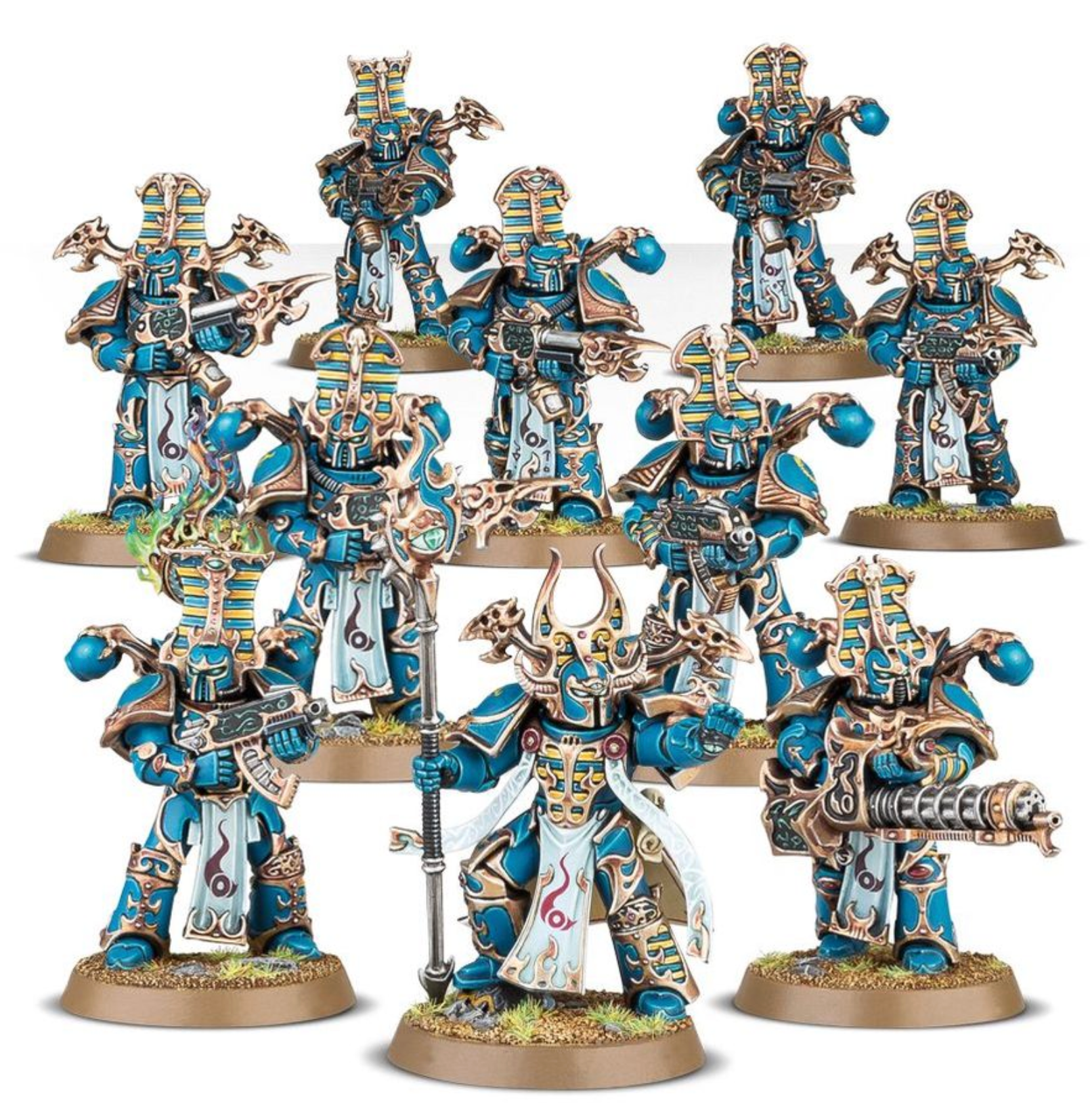 This multipart plastic kit builds ten Rubric Marines, utterly implacable infantry for your Thousand Sons armies in games of Warhammer 40,000. Led by an Aspiring Sorcerer who directs them in battle as a puppeteer would operate a marionette, they are ideal for clearing enemy-held objectives in a hail of lethal firepower before claiming it for themselves.
