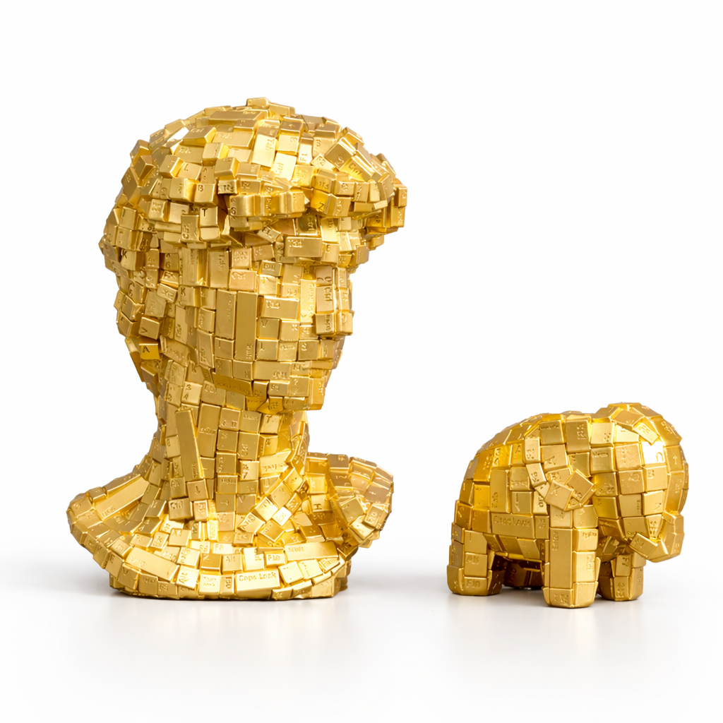Crafted from detailed keyboard-inspired elements and finished in a rich gold tone, this piece symbolizes strength, intelligence, and innovation. Its eye-catching texture and premium look make it the perfect decor item for homes, offices, or creative spaces.