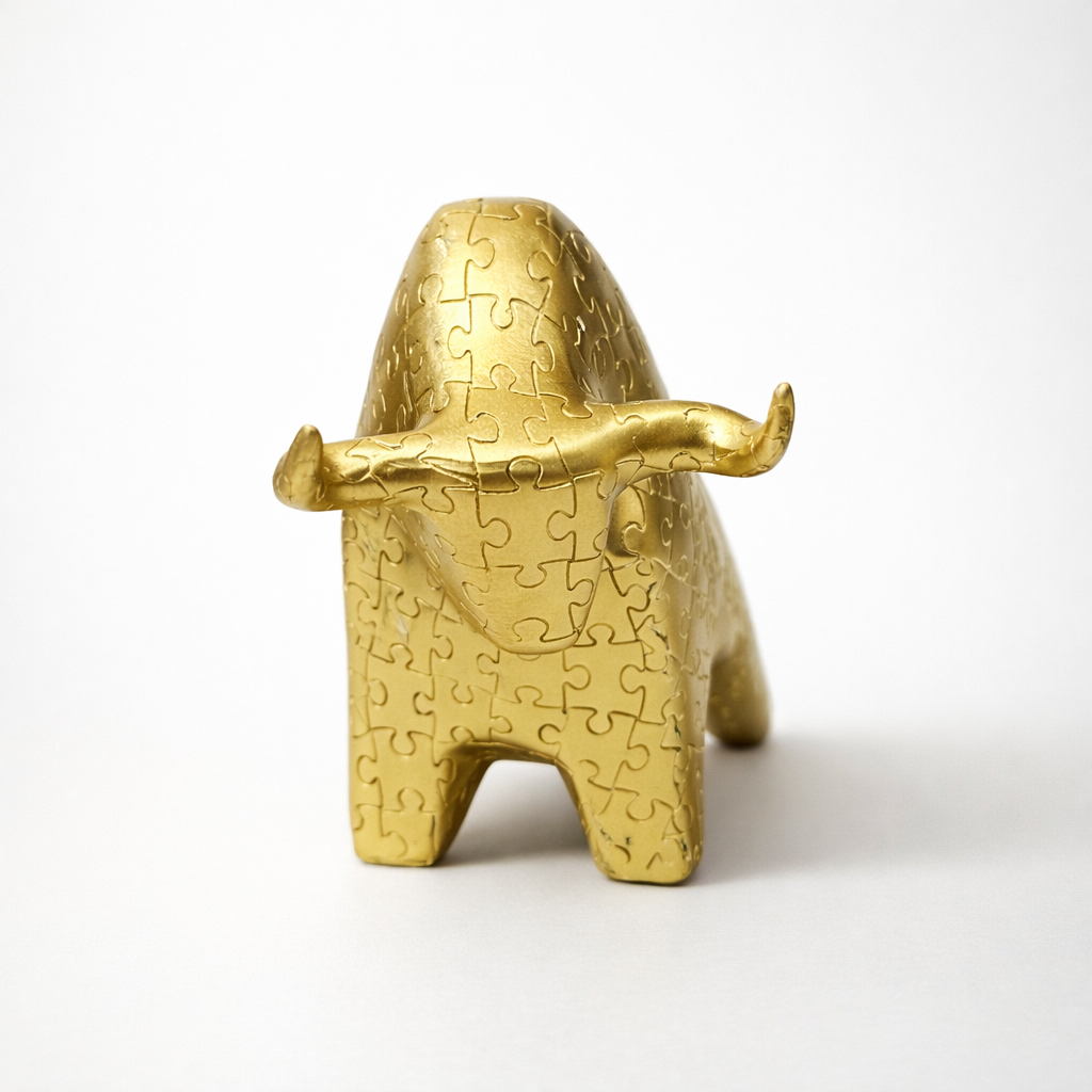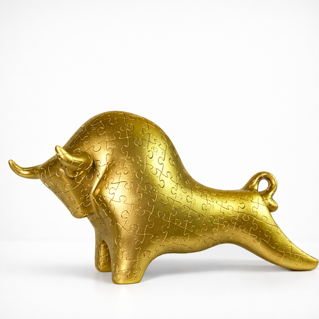 A bold statement piece that combines strength with artistic detail. This unique bull figurine features an intricate puzzle design finished in a luxurious gold tone, symbolizing power, unity, and sophistication. Perfect for modern interiors, offices, or as a standout gift, it adds character and elegance to any space.